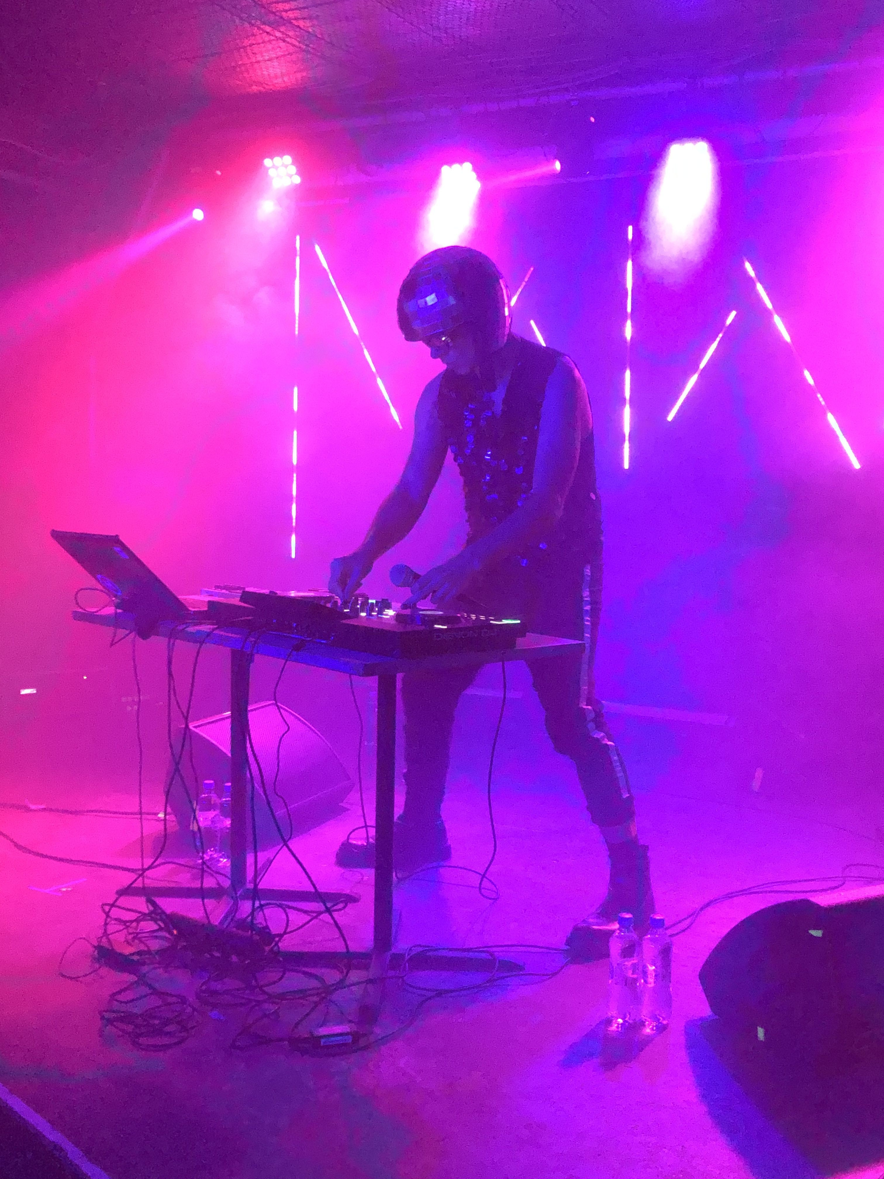 Występy Hiroszymy to one-man-show par excellence – i nie inaczej było podczas piątkowego koncertu w Hydrozagadce. Grzegorz Szyma nie tylko znakomicie panuje nad syntezatorami, ale także nad wizualnym uzupełnieniem swojej muzyki. Sceniczny imaż Hiroszymy to nieodłączne ciemne okulary i kask stylizowany na kulę dyskotekową, co w połączeniu z doskonałym wyczuciem tego, o co chodzi w nowoczesnej odmianie brzmienia minimal synth, sprawia że muzyka warszawskiego artysty po prostu trafia do publiczności i prowokuje do tańca (ale także do namysłu).
